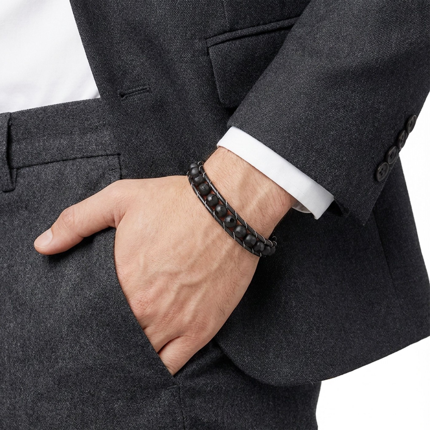 Kullanılan taşlar orjinal doğal taştır. Ceyt, sıkma, cam yada taklit ürün değildir. Kodron olarak kullanılan deri hakiki deridir. Örme işleminde kullanılan malzeme çelik ipliktir. Birinci sınıf malzeme ve el işçiliğiyle yapılmıştır fabrikasyon değildir. Taş ölçüleri 8mm dir ve bileklik toplam uzunluğu seçeneklerde olan 19cm 20cm ve 21 cm dir