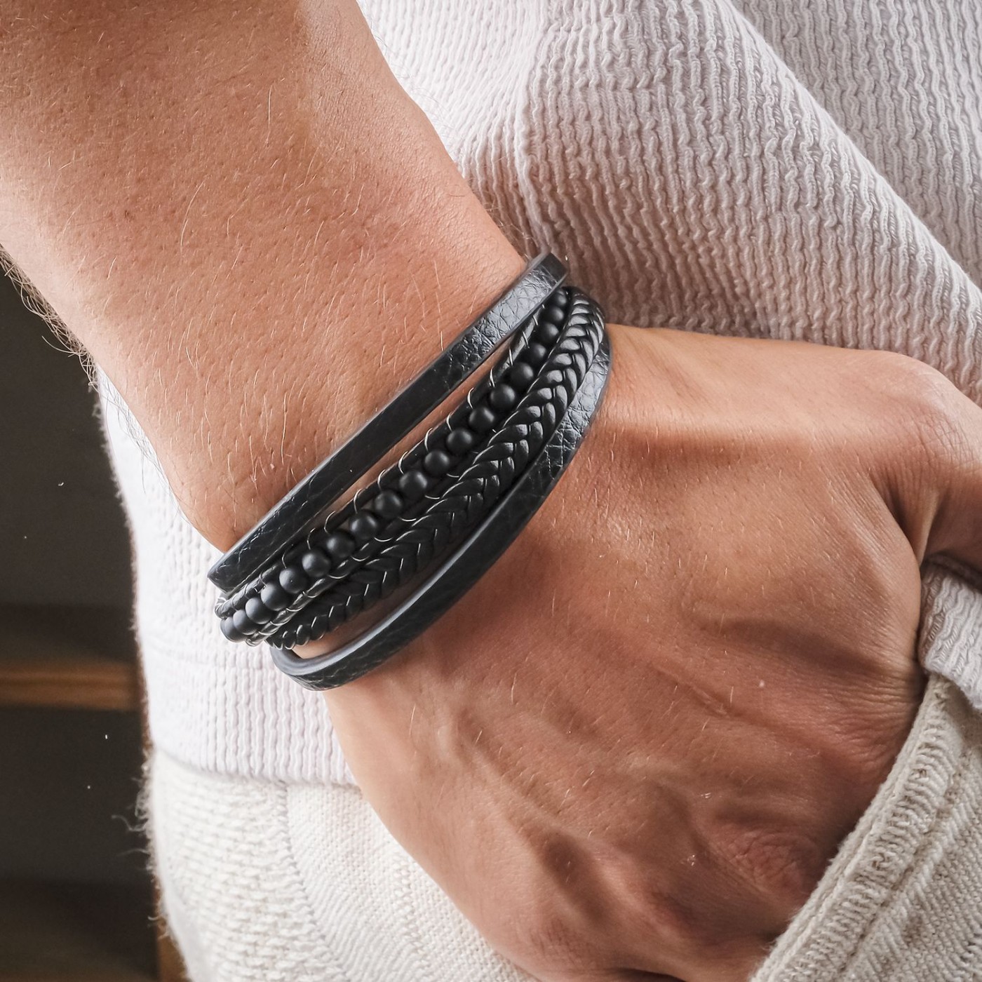 Bilekliğin taşları orjinal 4mm doğal taştır. Sıkma ceyt plas vs kesinlikle değildir. Deri kısımları ince çelik iplik ile örülmüştür. Bileklik deri ve doğaltaş birleşiminden yapılmıştır. Klips kısmında mıknatıs bulunmaktadır. Metal alaşımları ömür boyu renk atmama garantilidir. Taş ölçüleri 4mm dir ve bileklik uzunluğu 20 cm dir